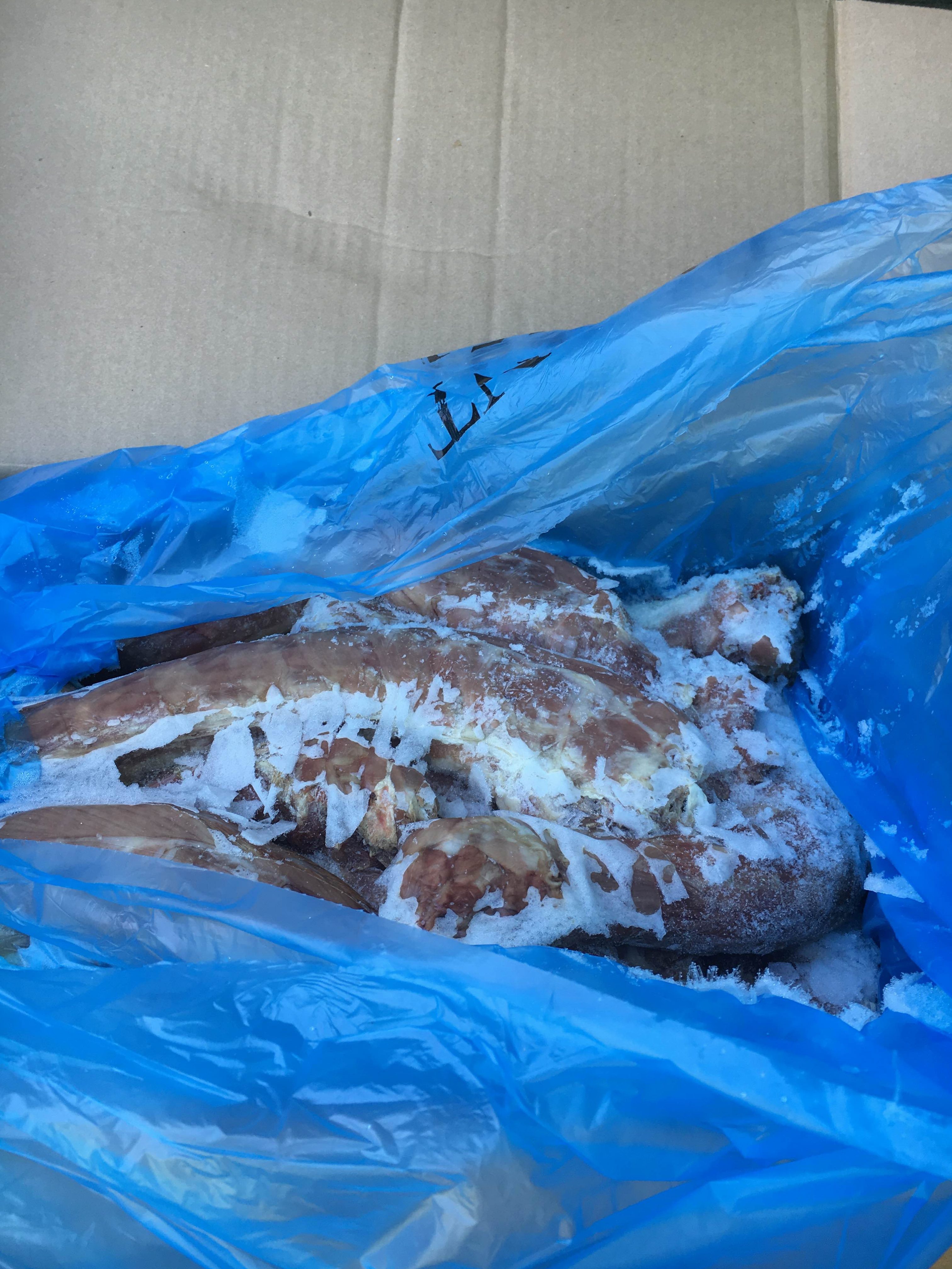 These are pictures are of a solid case of turkey necks. We can break them up into gallon bags , but most people order just